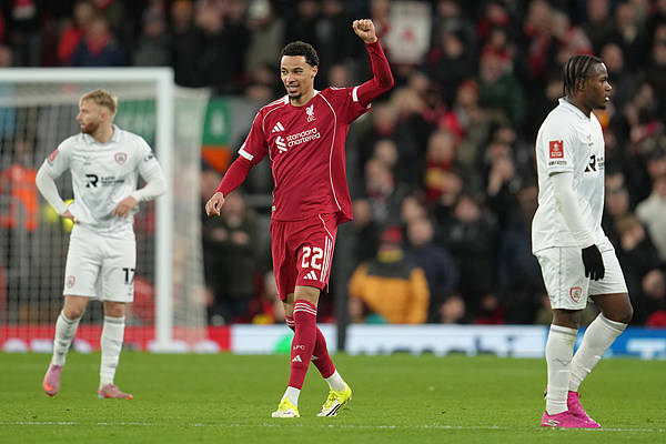 北京时间1月13日英格兰足总杯第三轮,利物浦对阵巴恩斯利。上半场,索博斯洛伊世界波轰入死角。麦卡利斯特助攻,弗林蓬破门。索博斯洛伊出现致命失误,菲利普斯射空门得手。比赛中。图片来源:视觉中国下半场,维尔茨兜射建功。随后,维尔茨送出助攻,埃基蒂克铲射得分。全场比赛结束,利物浦4-1击败巴恩斯利,成功晋级足总杯下一轮。